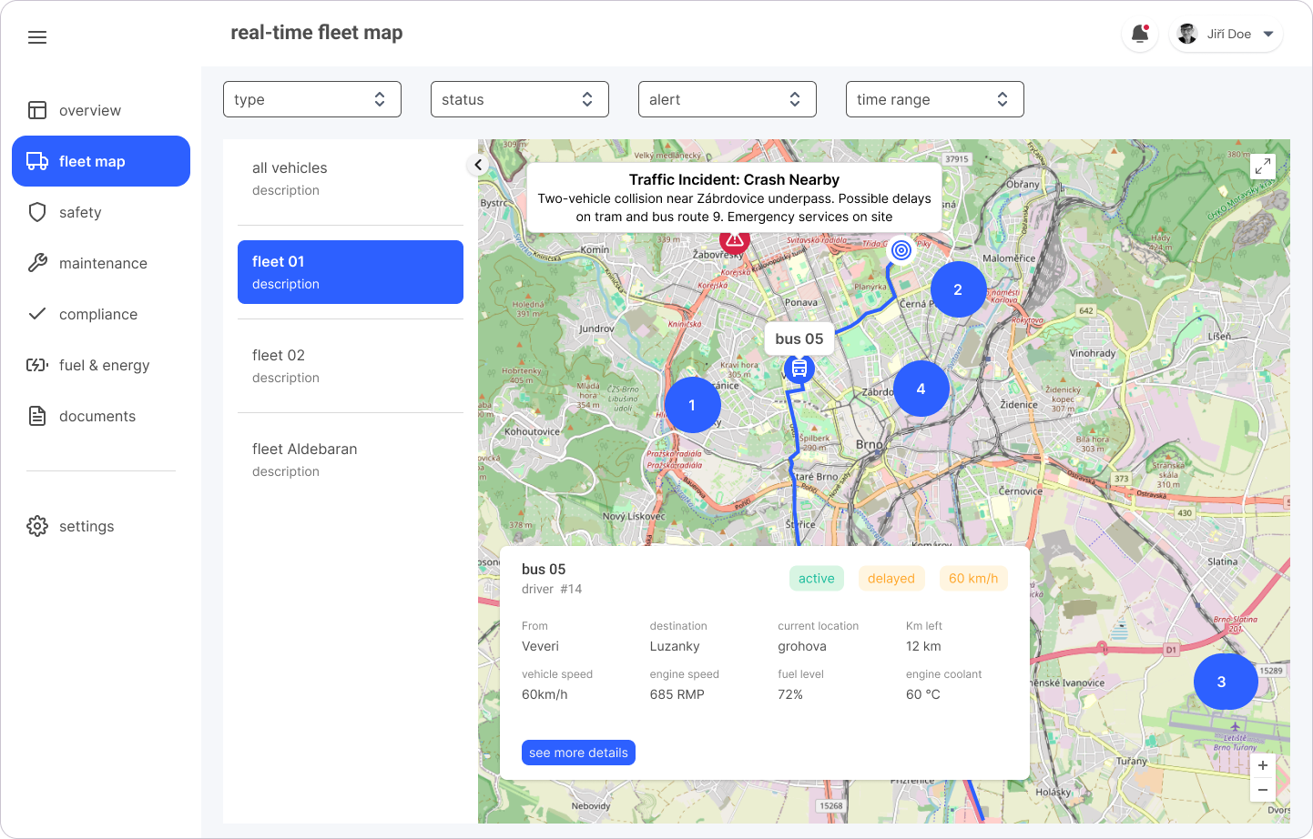 - Responding to operational alerts (vehicle breakdowns, driver issues)