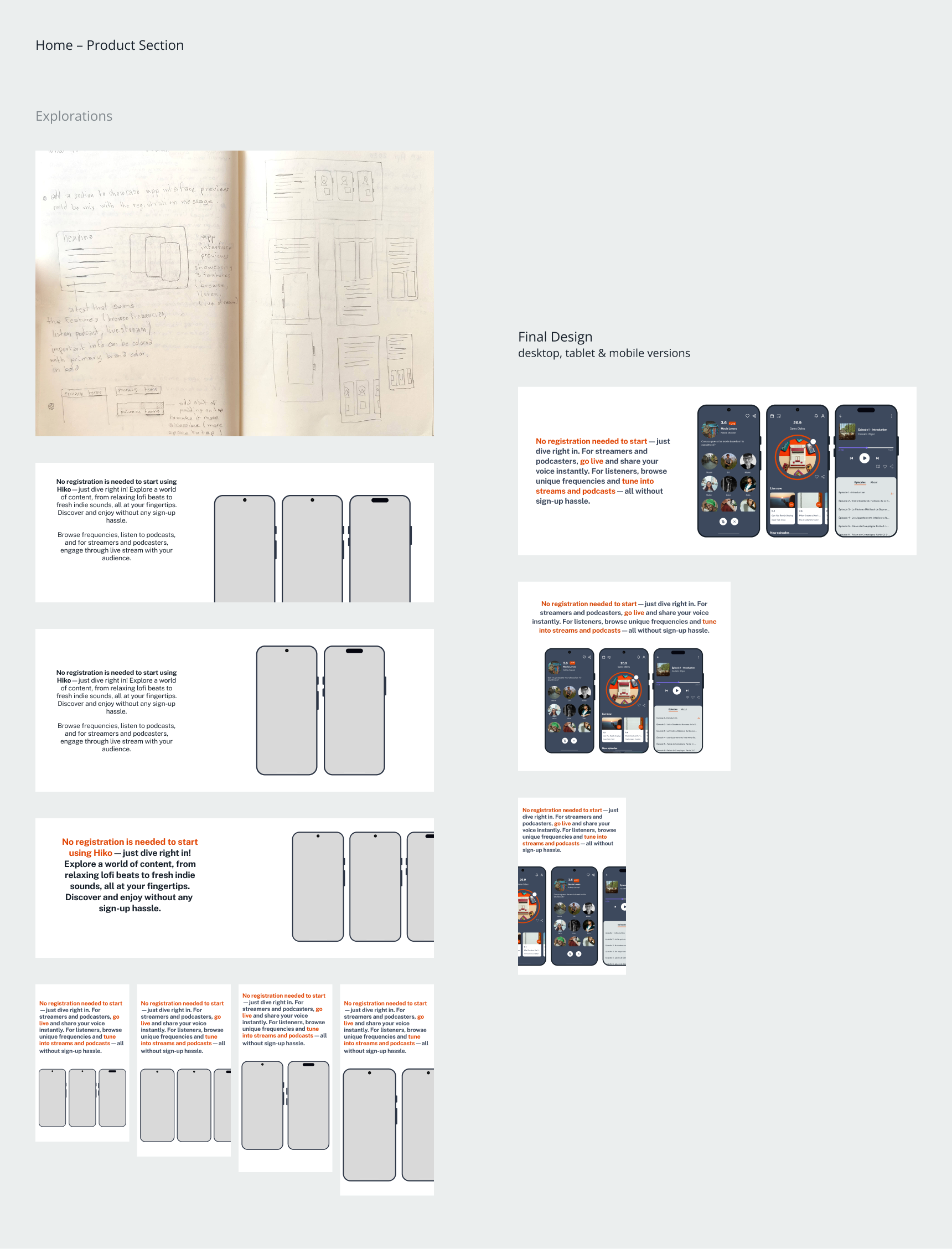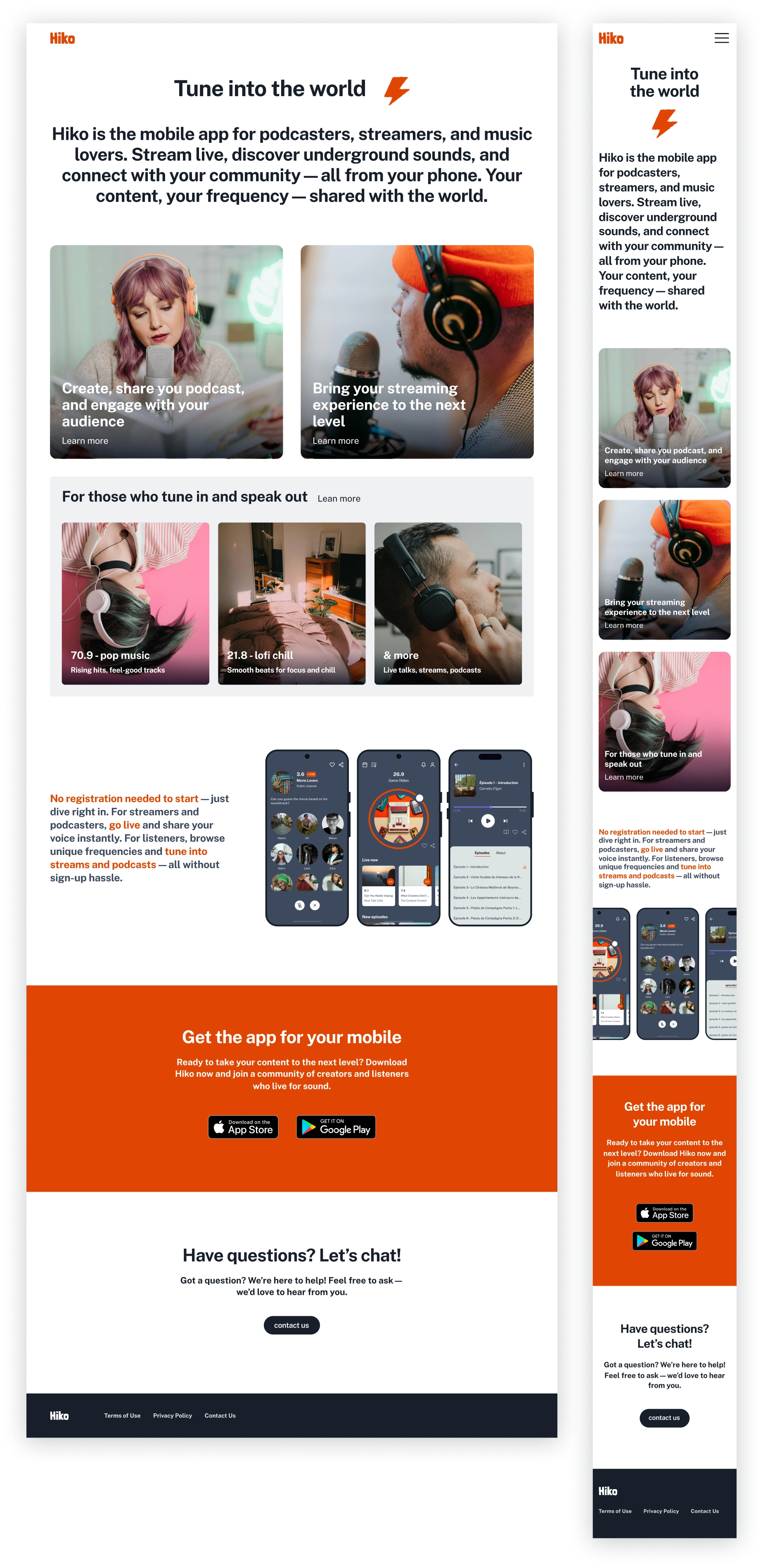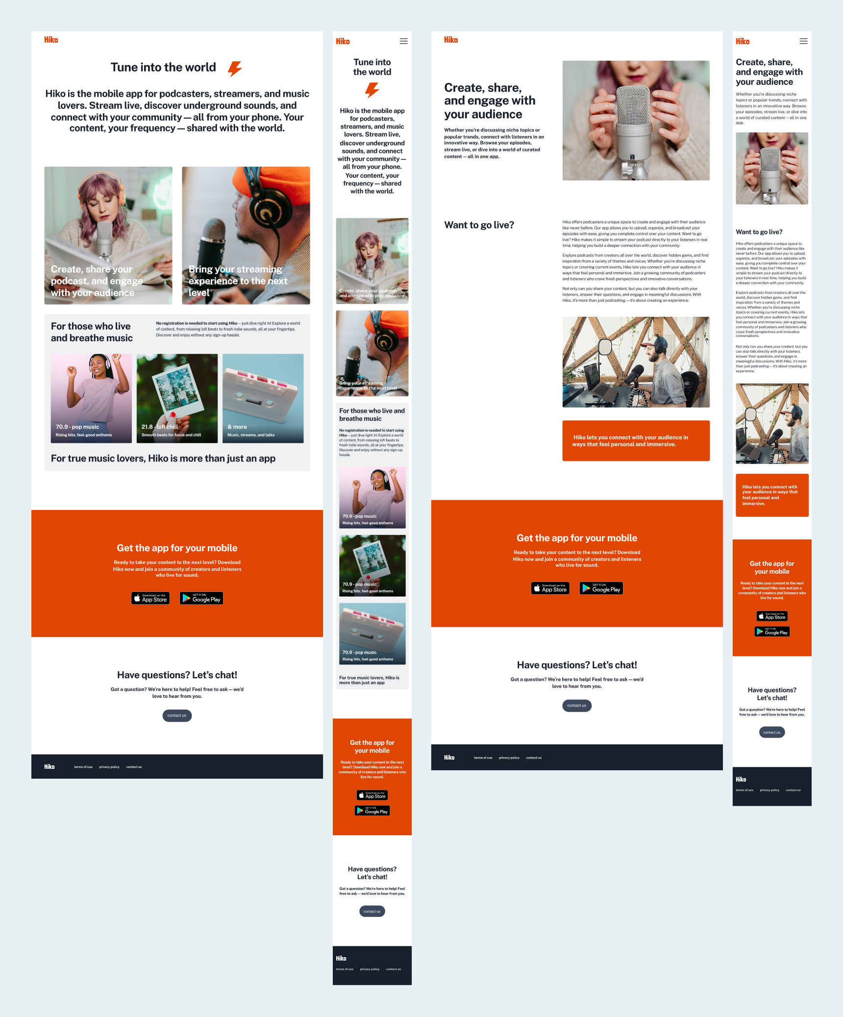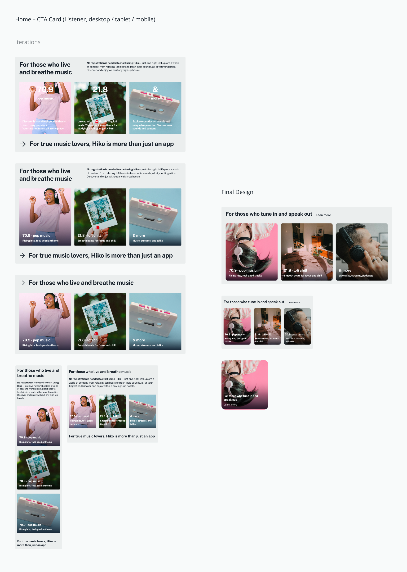 This research built a dual perspective: listeners needed easier exploration and saving, while creators needed visibility and connection. The website had to appeal to both groups and clearly reflect how Hiko could serve them.