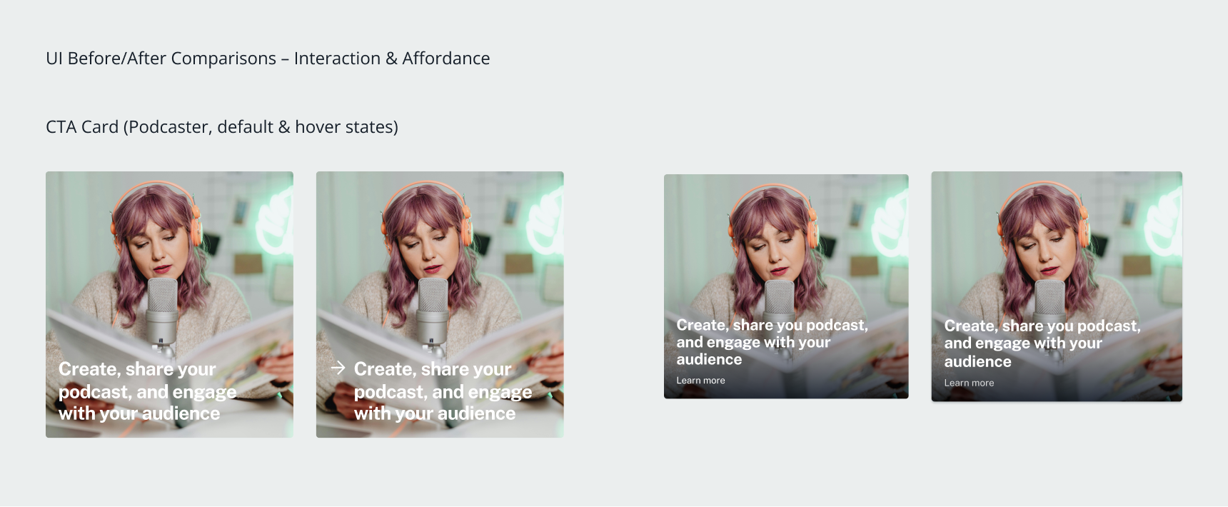 - Low affordance of CTAs cards: Creator/listener CTA cards were mistaken as static on mobile due to poor visual cues and animations.